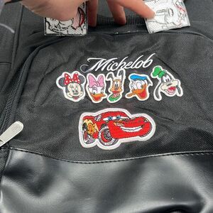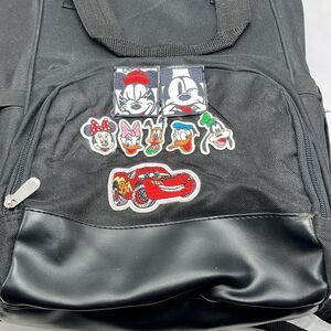 This is a great custom Oniva Michelob black backpack cooler with Disney patches! It is 11 inches long, 6 inches wide and 23 inches tall. The top does fold over to make it smaller. There is a bottle opener on the back of the backpack. There is one corner that has some peeling, see last picture. The Michelob brand name is hidden under the Mickey and Minnie patches.