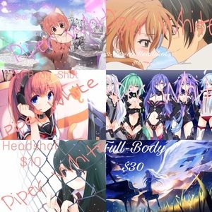 If you want Full-Body it's $30 If you want your picture to be cat-styled! (Ears and Tail) its $1 extra (Just cat ears or just cat tail) it's $0.50 extra!