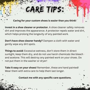 Painted with high quality materials & coated with a water/scratch resistant sealant. Men’s size US 9. Brand new & ready to ship!