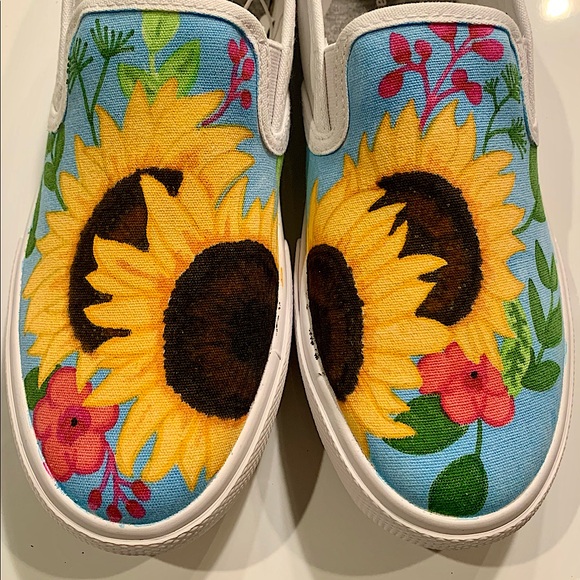 Custom painted sunflower shoes. Never worn. Size 7.5. Shoe brand-Amazon essentials.