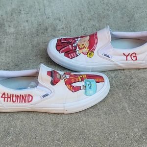 Custom Painted VANS YG Go Loko 4Hunnid Slip On Shoes
