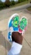 Preowned hand painted custom vans in good condition. They wash good and the paint does not wash off. Pictures taken outdoors to show true color.