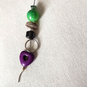 This pendulum has green and purple stones, beads, and hematite. perfect for some quick divination. Will get you answers from your guides quick.