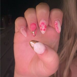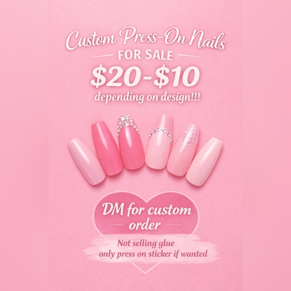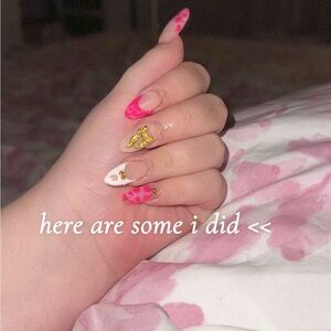 Custom press on nails. 20-10 dollars dm me so we can figure out the price, listed at 20 so i can bring it down💗. dm me to figure out sizing and designs 💗💗