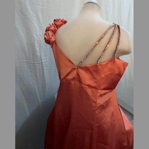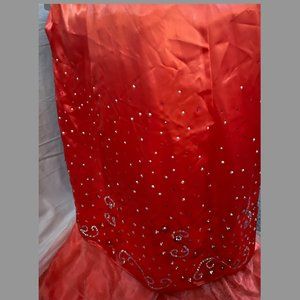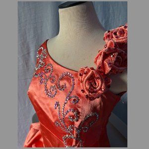 Two piece custom made one of a kind orange dress adorned with Swarovski crystals