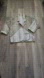 This is a custom made piece, due to this, there is no size or material content. Jacket feels like a very heavy wool on one side, and cotton on the other. It is Double lined and heavy. it is very thick