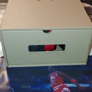 Stackable Custom Replacement Boxes. Men's Jordan's and Nike. Pull out and you don't have to move the boxes you have on top. Pull out your kicks and go. Low top max is size 11.5 Men's high top is max men's 11 . Box only No shoes.