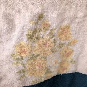 This is a custom made, one-of-a-kind sweatshirt. the floral detail across the middle is made with a vintage floral hand towel!