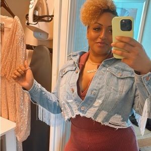 Custom Rhinestone Denim Fringe Jacket