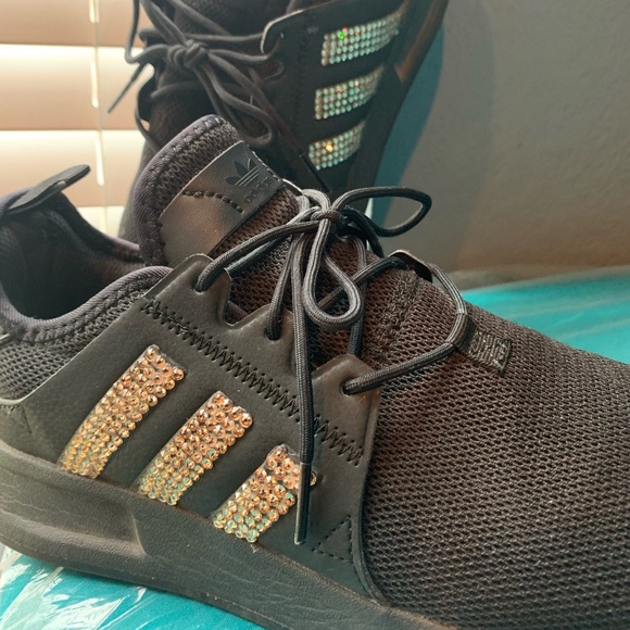 Custom Adidas, slightly worn. No Rhinestones missing, without arch support, I personally found them uncomfortable. I wear a size 7 but I think these are men sizes
