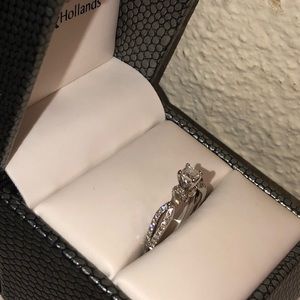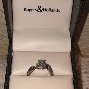 This is a custom made, originally $2,500, Rogers & Hollands diamond & sapphire white gold engagement/promise ring. Size 7 (can be resized up or down per jeweler). Worn for 4 years, has very slight surface wear that can be easily buffed out. One side sapphire is missing & will need to be replaced. Per jeweler, replacement stone is $150ish. All diamonds are SI quality. Center stone & side accent diamonds each equal a half carat, totaling 1 carat in quality diamonds. Asking Price: $1,500, OBO.