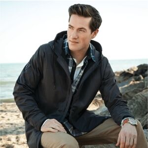 A sleek and modern rain jacket, the Martinriver Jacket features a water resistant coating. Added details such as the hood, exterior pocket stitching and subtle color blocking on the hem, sleeve and zipper add to its fashion-forward appeal. This jacket will protect you from the water elements. It is available in three versatile colors. The Martinriver is a surefire winner for trendy rain jackets. Complies with Prop 65. 14.5" D x 23.52" W x 0.51" H