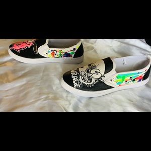 These shoes have been pretreated and hand painted with specialized shoe paint to get this cool custom design without having to wear about paint cracking or your normal wear and tears π