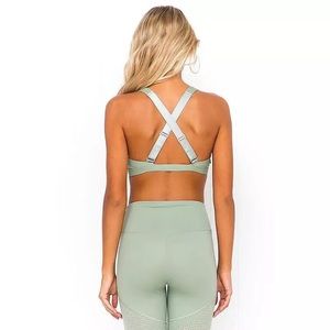 Custom Soft-Green 2-Piece Fit Set with Mesh Block on leggings. Bra Style Top. Removable padding. Satin-shine straps. Brand New