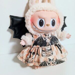Custom Spooky Halloween Bat Dress and Faux Leather Bat Wings Made to fit Labubu