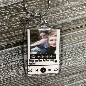 Totally customizable Spotify keychain you choose picture song and background color! Spotify code will actually scan and play song!!