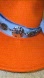 Elevate your style with this chic orange fedora, featuring a distinctive blue band. Perfect for adding a pop of color to any outfit.