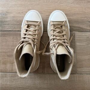 Beige high-top sneakers with classic design. Ideal for everyday style.