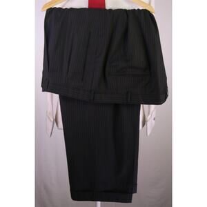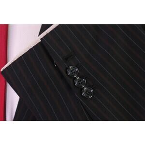 Custom Tailored Black Brown Striped Peak Lapel 2Btn 170s Wool Suit Big 54L 56L