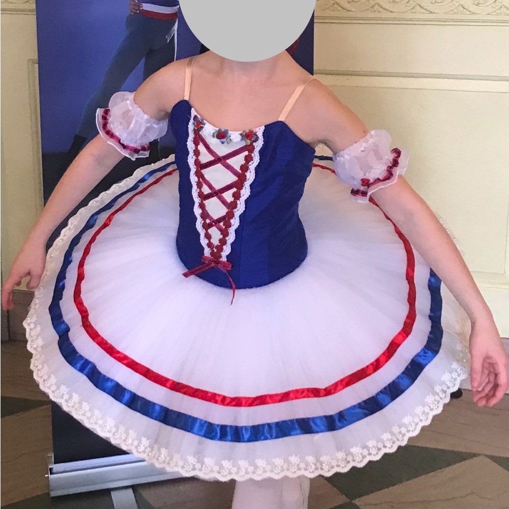 Gorgeous custom-made Flames of Paris tutu. Fits girls size 8-12 (adjustable hooks in the back). Excellent condition, meticulously cared for and only worn a handful of times. Includes hairpiece.