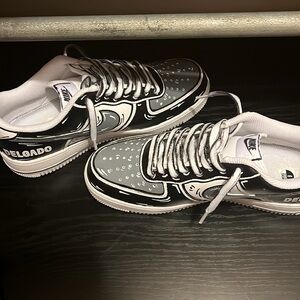 These were very expensive and I got them customized whoever wants them they can have them I’m trying to sell them bc I’ve never worn them bc they to big and I tried them but they were custom made in California and pls buy if want them they’re very comfortable and everything and theirs no creases or anything not a scratch no dirt nothing