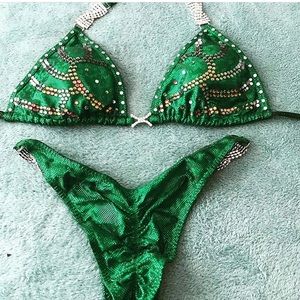 Green Swarovski crystal custom bikini with diamond connectors. One of a kind.