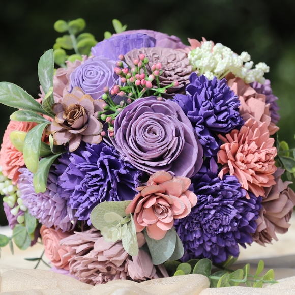 beautiful custom bouquet in purples and pink