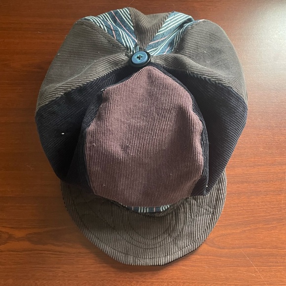 Custom made cap. Hat. Corduroy and stretch stripe denim. Bill. Double button top. This is not perfect there are flaws. Everything is obo bundle and save