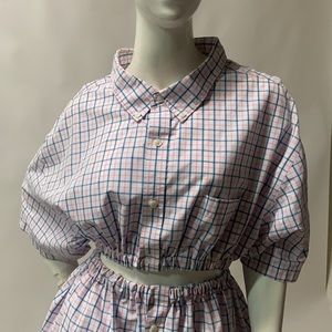 It’s recycle clothes to customize made this clothes from 3XL to small size and cut cropped clothes made 2 pieces. Very cute. It’s only one.