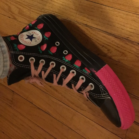 Hand painted! One side of each shoe is strawberries the other side is pink clouds