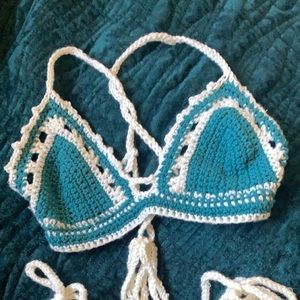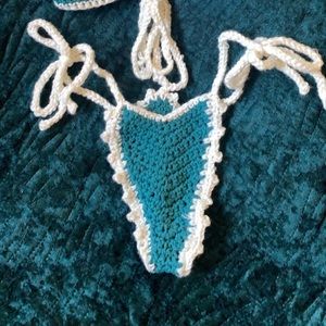 I make custom crochet sets for sunbathing out of cotton yarn and sleep sets and if you ask I can probably make it for you 😄 I am selling the blue set in the photos. Please keep in mind I am a 36 G so the top is an xl and the bottoms or a large but could fit a medium or xl because custom tie straps. Set prices vary