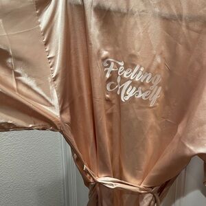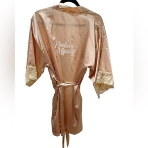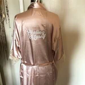 Custom “feeling myself” light Blush Pink Silky Lace Short Robe Bridal bath