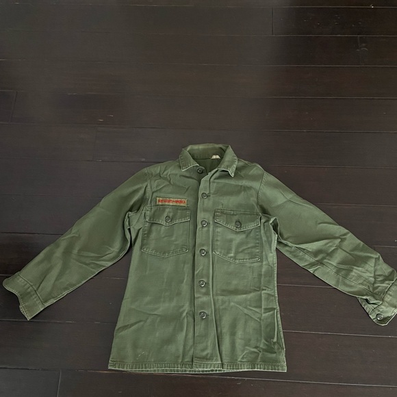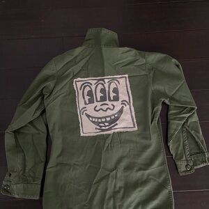 Was once a German military field jacket that I sewed a Boy Scouts patch on the front pocket and a Keith Haring patch I screen printed on the back. Great vintage piece with an artistic urban flair. Cheers