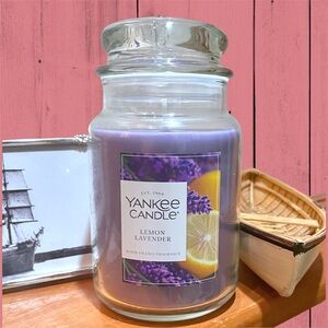 Huge 22 oz purple colored Lemon Lavender scent candle by Yankee Candle. Unused, new without tags, in a reusable 7” glass jar with sealable lid. I have more of my favorite scents Yankee Candles listed, happy to bundle.