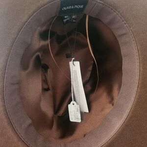 Beautiful custom hat! Brand new hat (interior size adjust string). Boho brown with lace and brown cord hat band. Detailed with match book, feathers, antique watch face, playing card snipit!