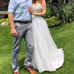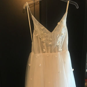 Bridal gown, bridal shower/prom/ball gown!Custom made bridal gown with beads,lace and flowers on the bodice which is a little bit sheer, has been altered to fit a size 0 but can be let out to size 2 . Very beautiful elegant dress!