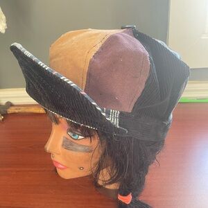 Custom made hat. Button top. Small back pocket. This is not perfect. There are flaws. Everything is obo bundle and save