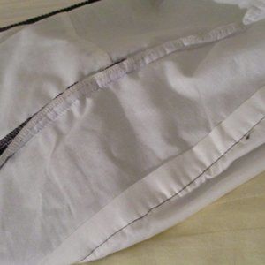 No bundling as this is already over 7 lbs - price reflects extra shipping. Heavy! Thick corduroy purple bed skirt dust ruffle made by a company that custom makes linens. Calico Corners. This is on a king bed so you can see it ample large for a king if you have the extra large mattress/springs. This is a brand custom made for model homes and photography shoots. Super high end and quality and very heavy. (20x15x8;6.8)