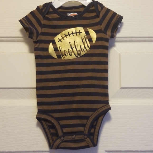 New Carter's navy blue and brown striped onesie with football in gold on the front. Perfect for the football season. Size 3 months