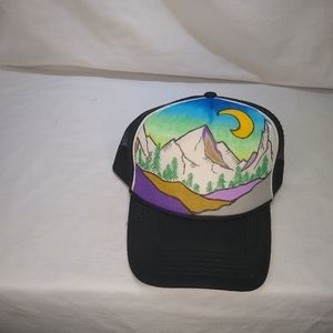 Hand painted by Salt Lake City, UT born and raised artist Sessie Eve. Made with quality fabric paint and sealed to protect from weathering. These trucker hats can be made-to-order and are all one of a kind. There may be slight variations between each one.