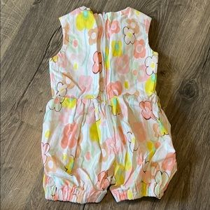 Pink floral with yellow accents. Cotton romper