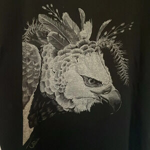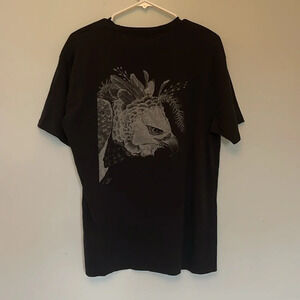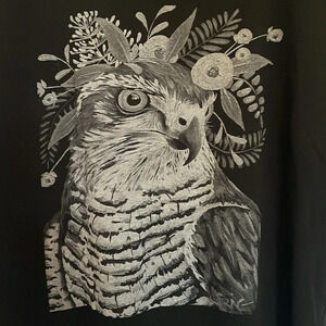 Custom screen printed design unisex size large gray scale hawk on black T shirt