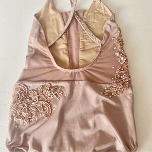 Ilo Gear solo custom dance costume leotard blush mauve rhinestone MC med child