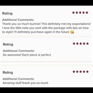 After purchase comment in messages sizes(measurements), aesthetic/style you’d like, any specifics such as color or other preferences.