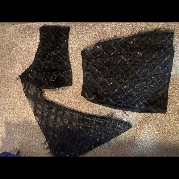 Custom two piece birthday fit I wore two years ago haven’t been worn since and only worn a few hours. One shoulder is out while the arm side hang and open wide to give that look.