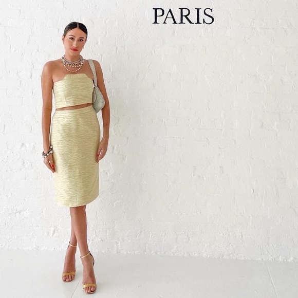 Worn to NYFW. My measurements are 34b-26-36. The top has extra fabric and can be let out to accommodate a larger bust. I’m 5’7
