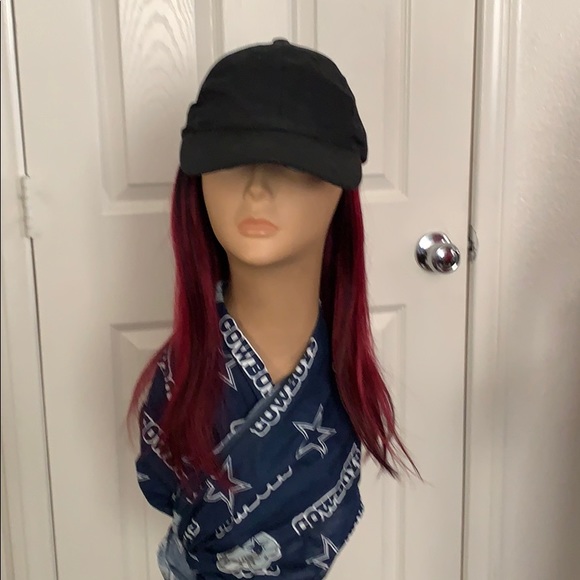 Plain black Velcro adjustable with gorgeous burgundy hair
