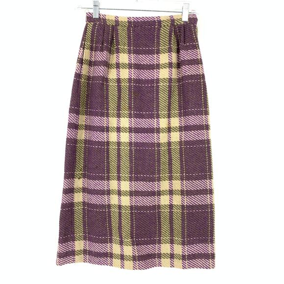 Custom-Craft Wool Skirt Womens 0 Plaid High Waist Purple Yellow Vintage NYC