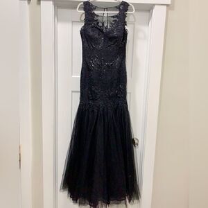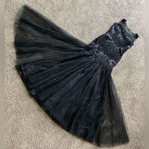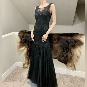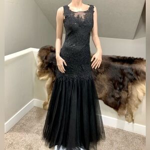 Custom made. Black embroidered floral lace with exquisite shiny sequins and beads. Elegant and shimmering for your special event.
