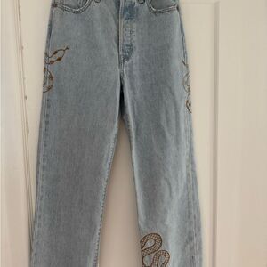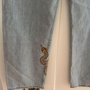 🐍Custom Levi’s Snake Reputation Embroidered Light Blue Jeans 25
